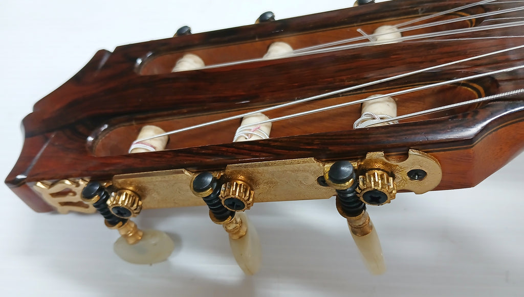 The Fernandes GC-30 is a vintage, Japan-made classical guitar known for its "Grand Concert" style, 658mm scale length, and 52mm nut width.