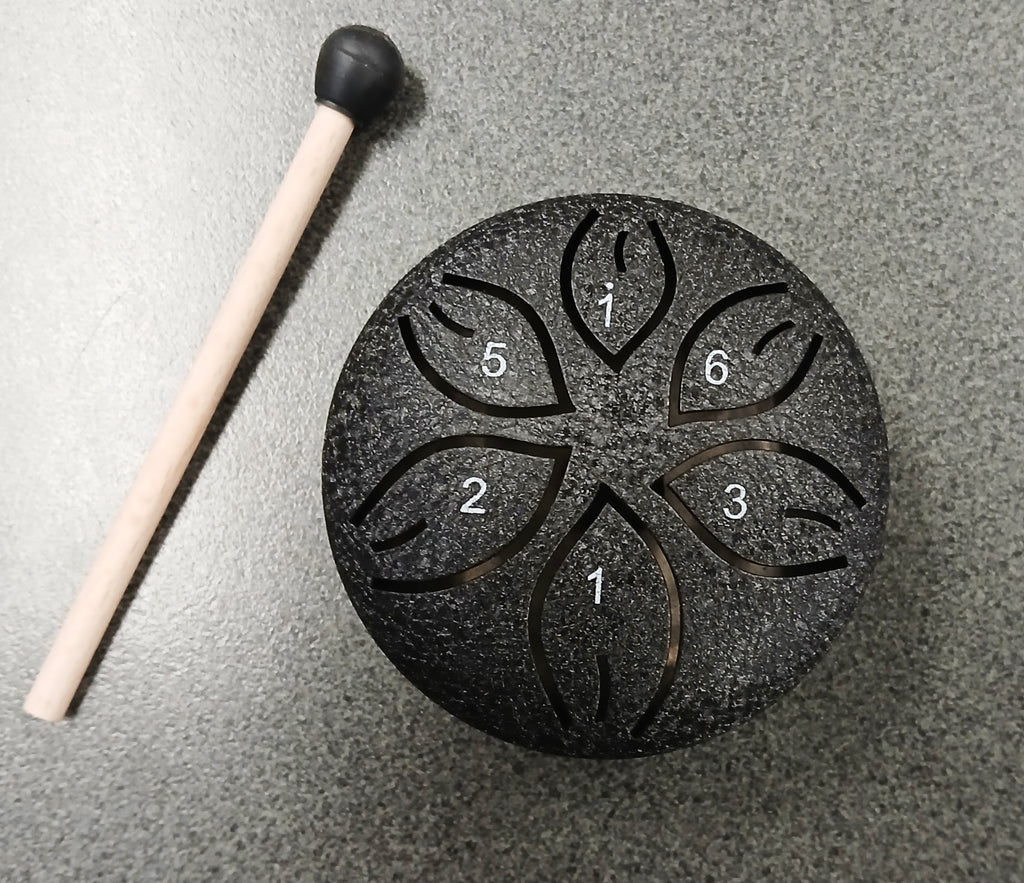 A steel tongue drum is a round hollow body made of steel. There are oscillating cut outs (tongues) on the surface, which are tonally coordinated (scale system) and whose sound is amplified by the sound box. The drums are very melodic and are known for their relaxing sounds and lightness of play, which does not require any special technique.