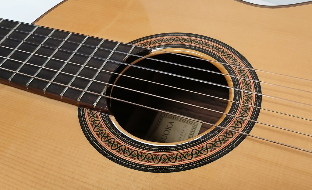 All-solid wood MG100 guitar from the Japanese classical guitar brand RYOJI MATSUOKA, with a string length of 652mm.